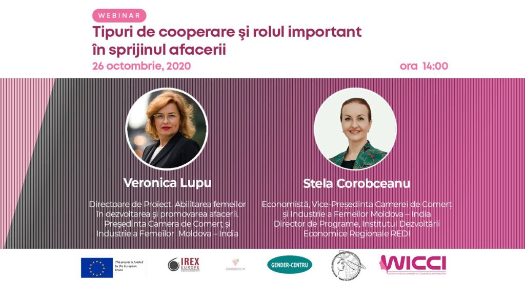 Vă invităm la evenimentul “Tipuri de cooperare și rolul important în sprijinul afacerii” din 26 Octombrie 2020, ora 14:00 pe net, platforma Zoom.